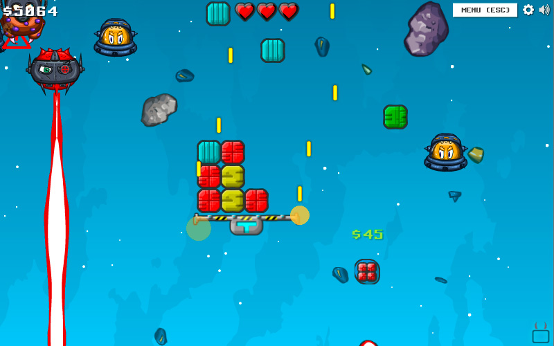 A match-three shooter game? Why not! Pick up blocks, use them as defense against monsters and meteorites, utilize monsters and match same-colored blocks! Upgrade your spaceship with your earnings, complete all of the sectors and test your survival skills! Enjoy!
